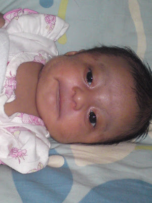 sebulan yg lalu, saye bertarung melahirkan baby mia....tepat kul 8.23 pm lahir lah baby seberat 2.05kg..hari ni, mia's check up...mlm tadi die tak mo tido langsung..